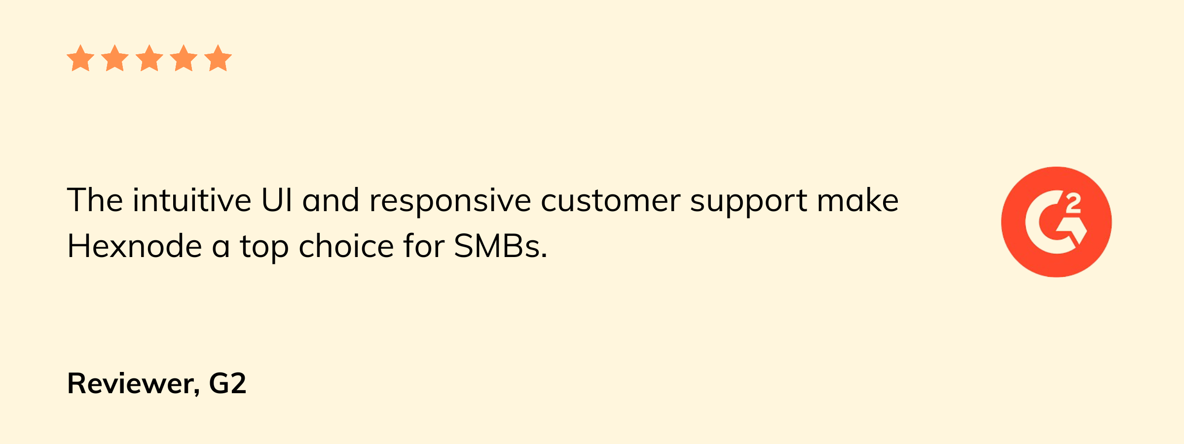 Hexnode shines with its clean interface, flexible pricing, and broad platform support, making it an excellent choice for SMBs seeking simplicity, scalability, and responsive support.