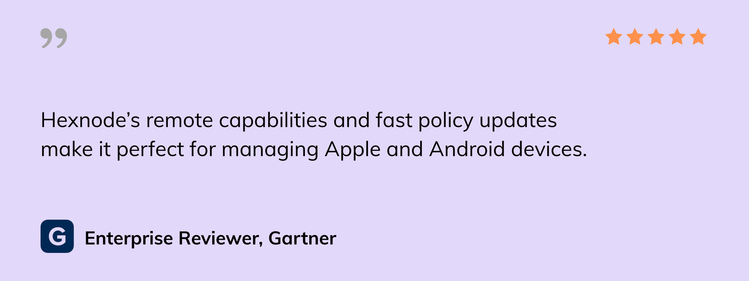 Hexnode is trusted by both SMBs and large enterprises, and has earned recognition from Gartner, IDC, and Forrester for its innovation and usability.
