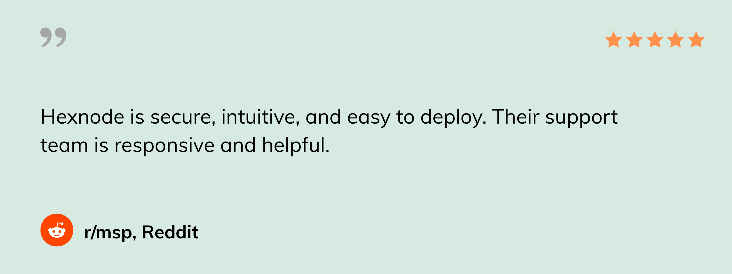 Hexnode is often praised for its quick setup and intuitive UI, making it ideal for small IT teams with limited resources. ManageEngine offers more granular control but may require more initial configuration and training.
