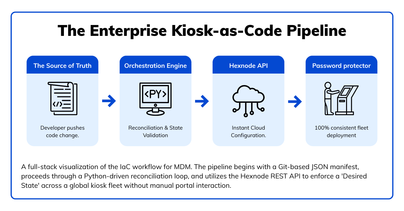 By adopting this Hexnode API-driven workflow, you ensure that 1,000 stores look exactly like 1 store. You eliminate human error, secure your configuration chain, and gain the agility to deploy complex fleets in minutes, not months.