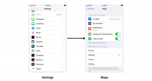 You can also check the permissions that an app has by scrolling past the privacy banner in the Settings app. Select the specific apps, and you can see the permissions it has access to. Let us consider ‘Maps’.
