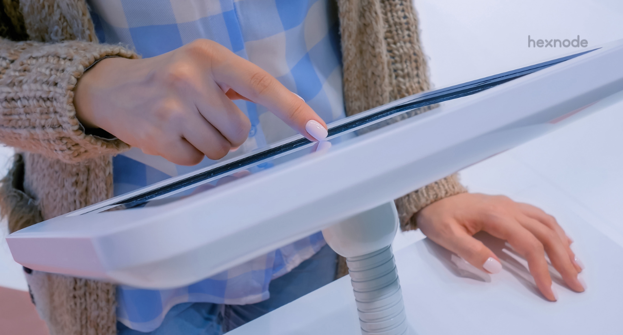 Similarly, iOS kiosk devices influence airports and transportation hubs, museums and galleries, hospitals and healthcare facilities. To manage and secure these iOS kiosk devices, businesses and organizations can use a Unified Endpoint Management (UEM) solution like Hexnode UEM. Hexnode UEM provides a simple and intuitive platform to manage and secure iOS kiosk devices. With Hexnode UEM, businesses and organizations can remotely manage iOS kiosk devices, enforce security policies and monitor device usage.