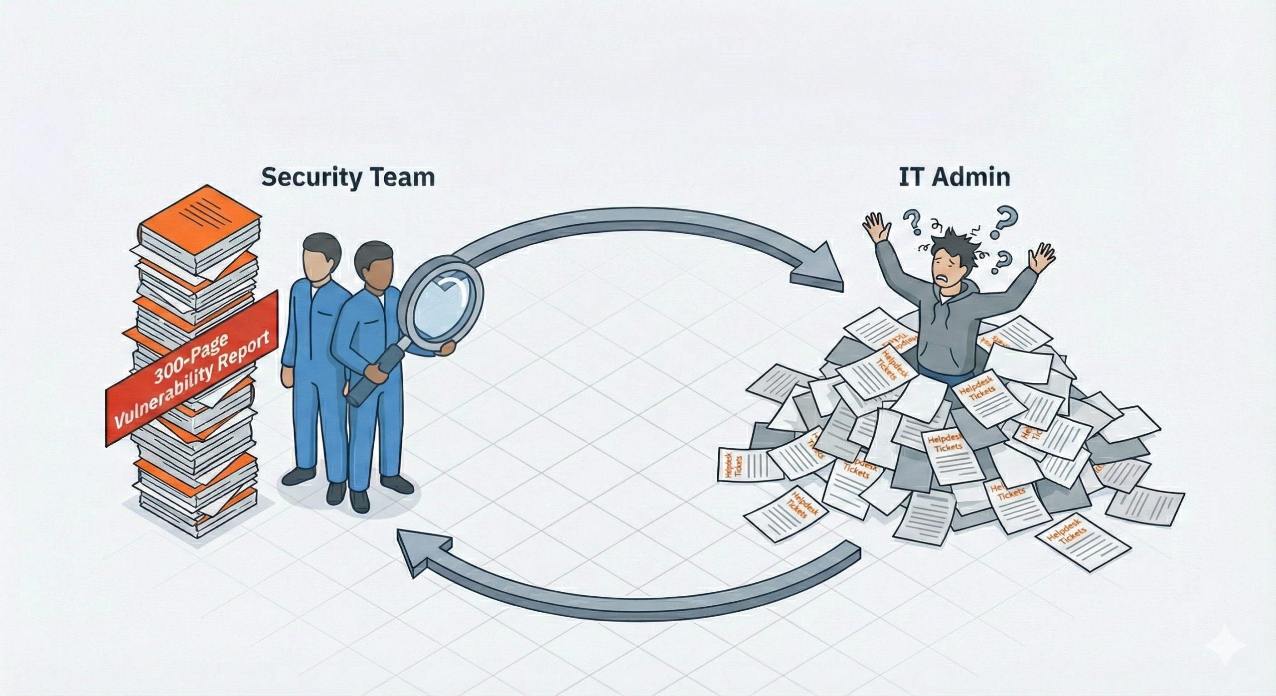 Most organizations are currently stuck in a “Scan and Scramble” loop. The Security team runs a scanner and hands over a 300-page PDF report to the IT team. This report contains thousands of “Critical” and “High” alerts. The IT Administrator, already buried in helpdesk tickets, looks at this massive backlog and asks the impossible question: “Where do I even start?”
