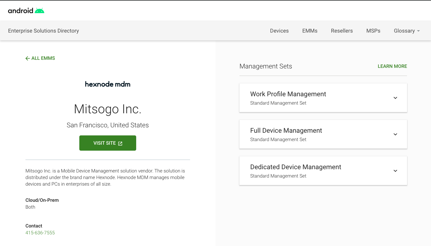 Android Enterprise Recommended is a validation program run by Google for Android devices, vendors and carriers that support Android Enterprise. It gives a list of devices/EMMs that satisfy Google’s elevated set of requirements for Android Enterprise. The program is being extended to cover MSPs and Carriers this year. With this list, organizations can choose the best device suitable for their work requirements. You can find Hexnode on the list of Google verified EMM vendors for Android Enterprise!