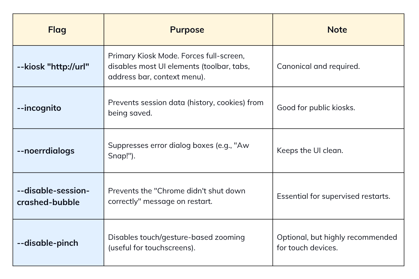Download InfographicThis section covers two canonical options, a browser-based kiosk and a custom application kiosk, plus the system-level plumbing to build a fully locked-down Linux kiosk mode.
