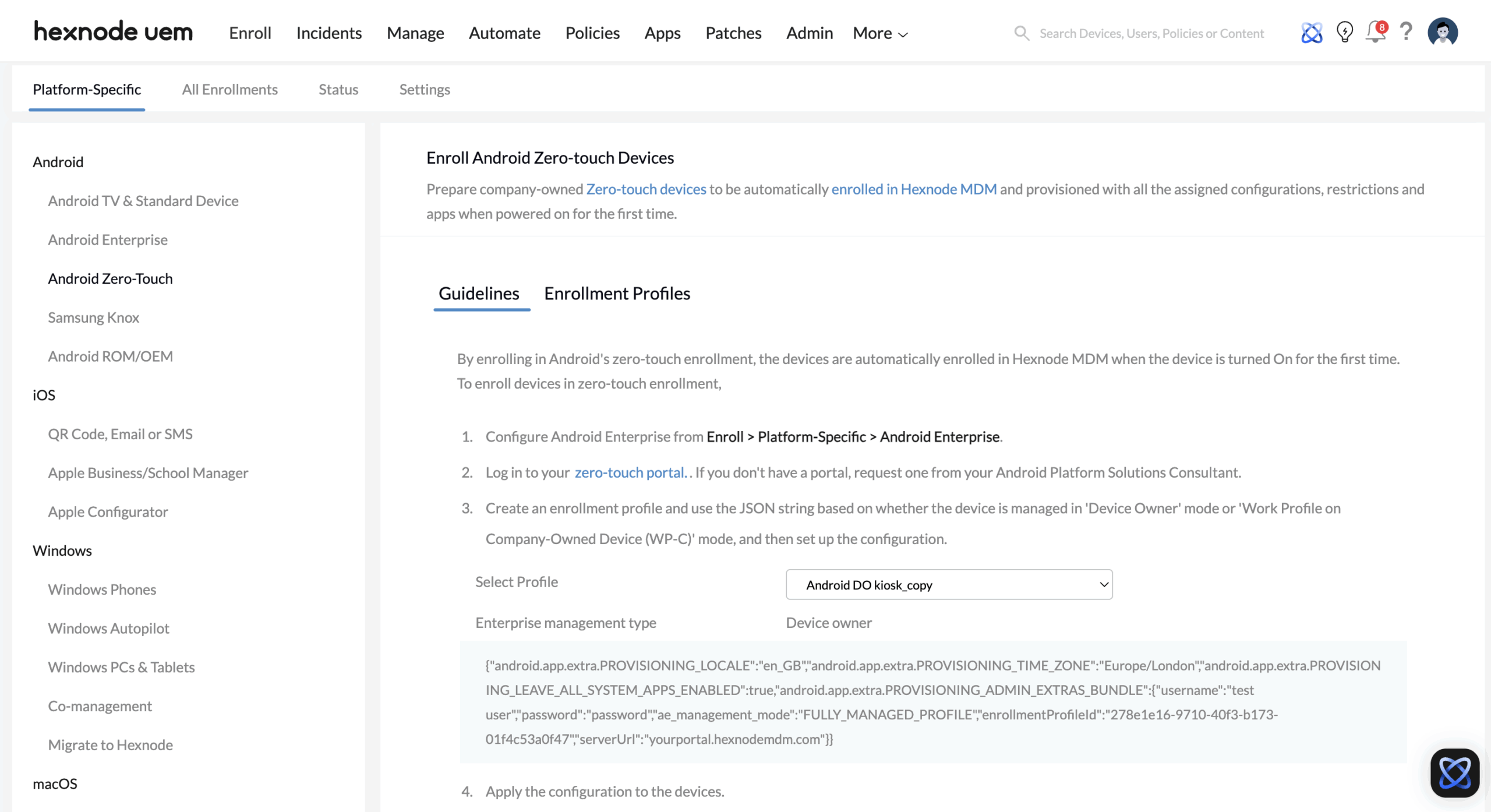Configure Android Enterprise zero-touch provisioning via Hexnode UEM