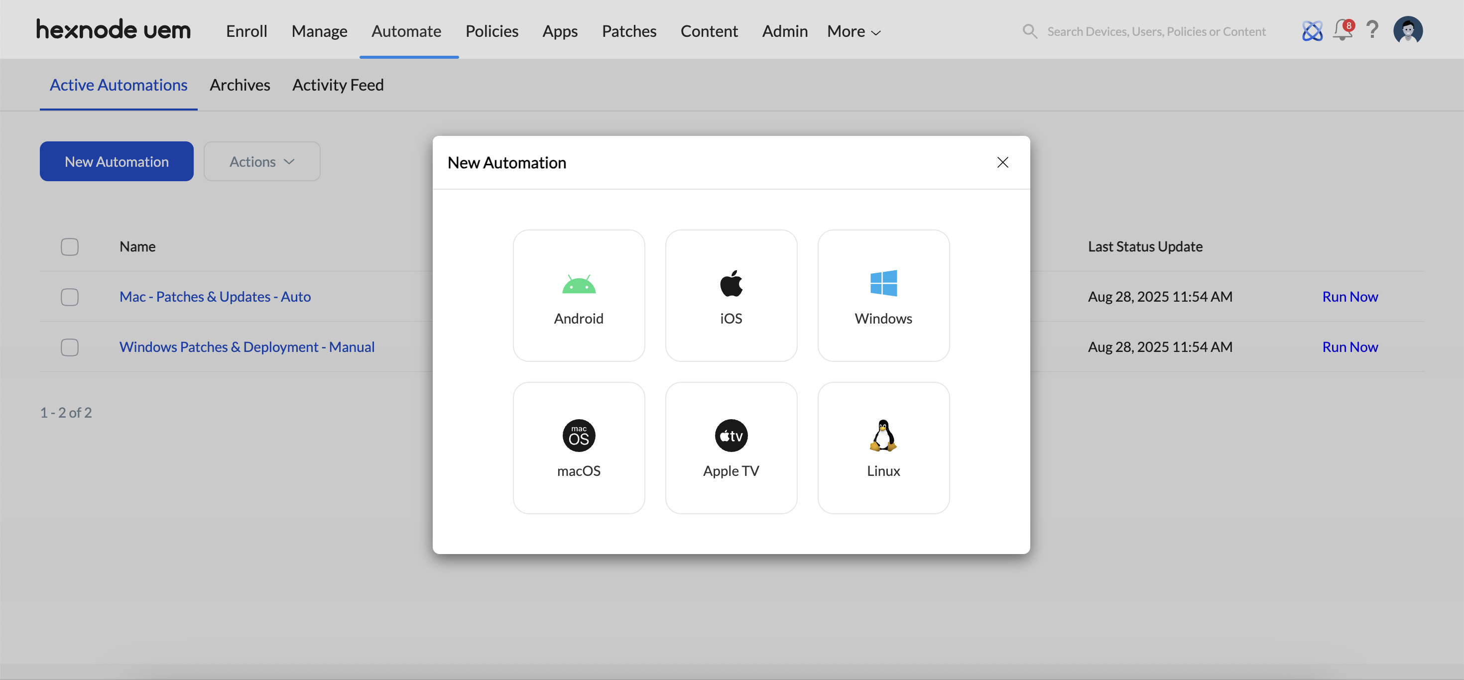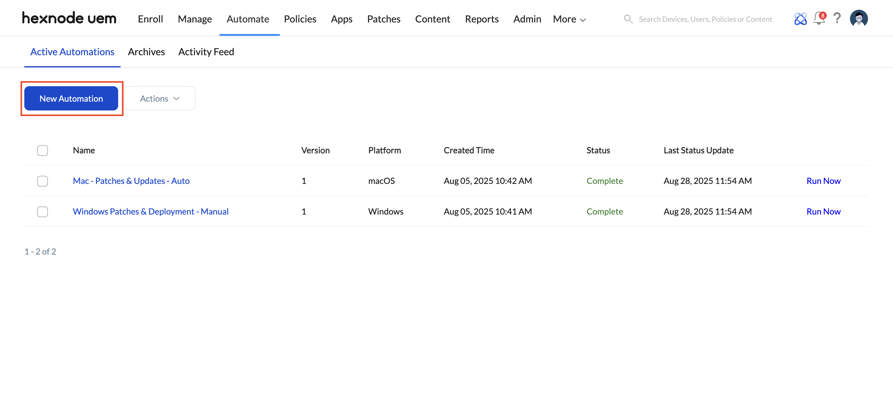 Additionally, each automation includes a “Run Now” option that allows IT admins to instantly execute the selected automation on targeted devices.