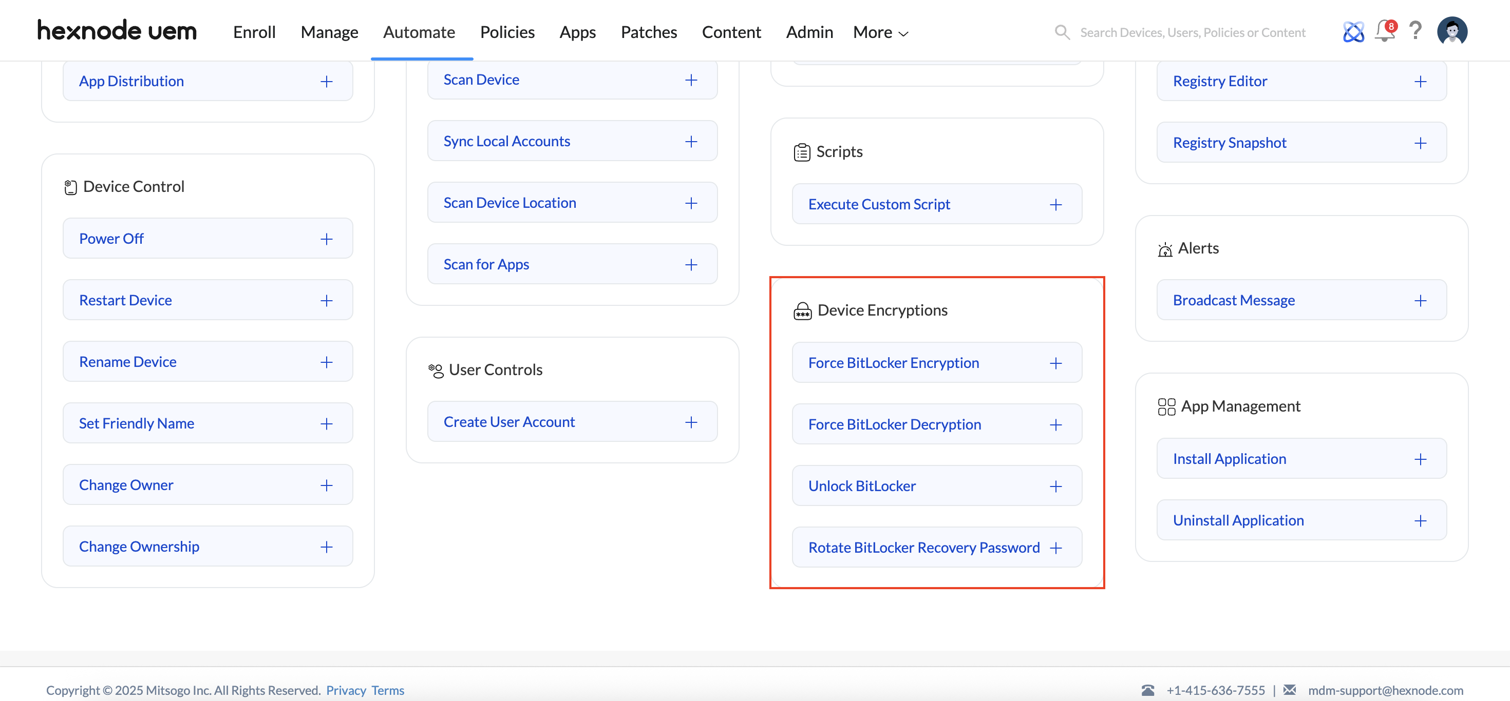 - Unlock BitLocker: Allows the admin to unlock a BitLocker-encrypted drive remotely, providing access to the data if locked.