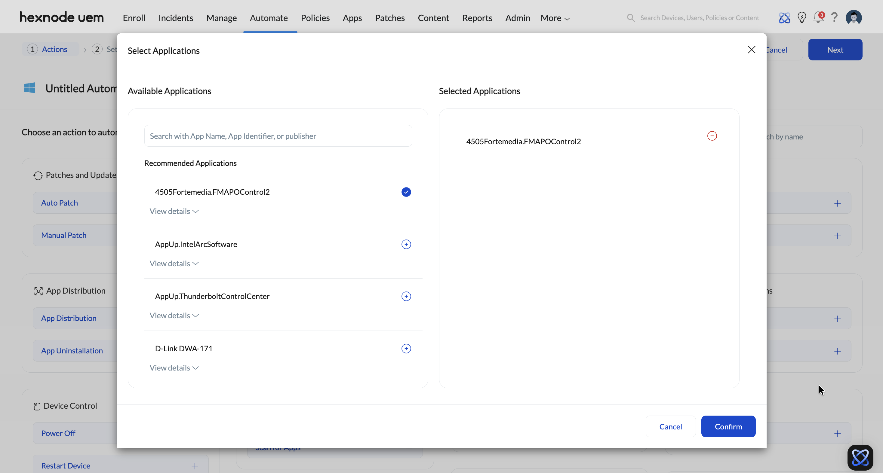 Click Add next to the desired applications targeted for removal, then click Confirm. You can select multiple apps simultaneously.