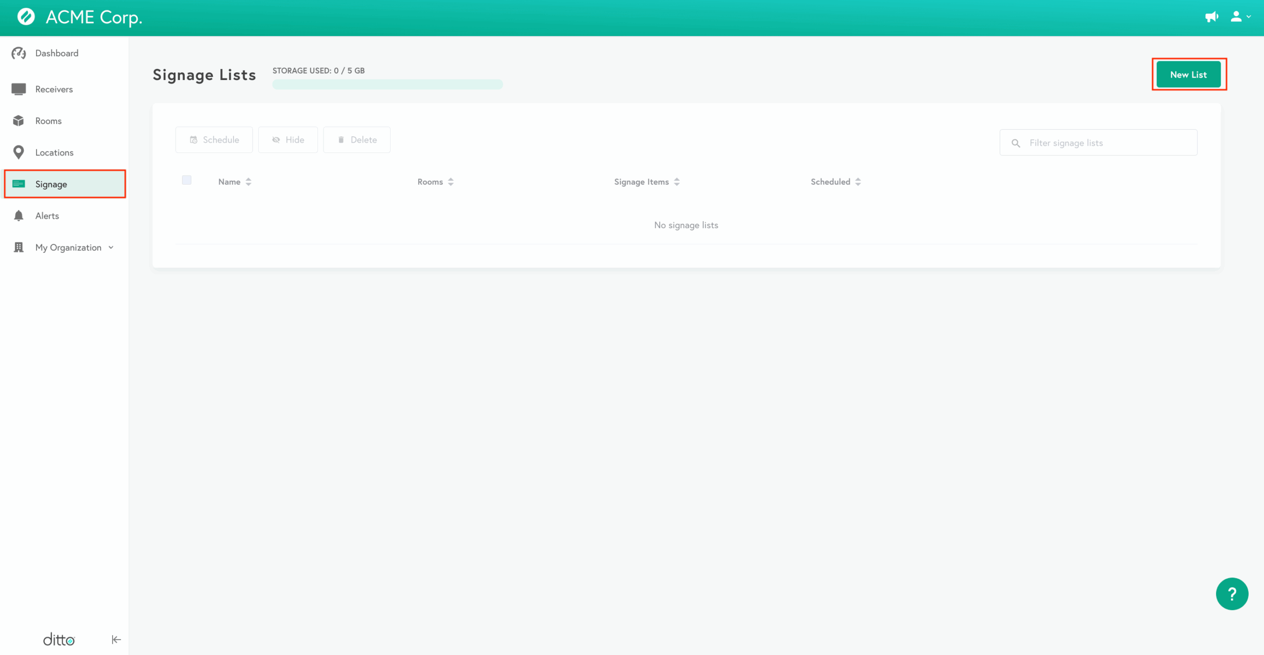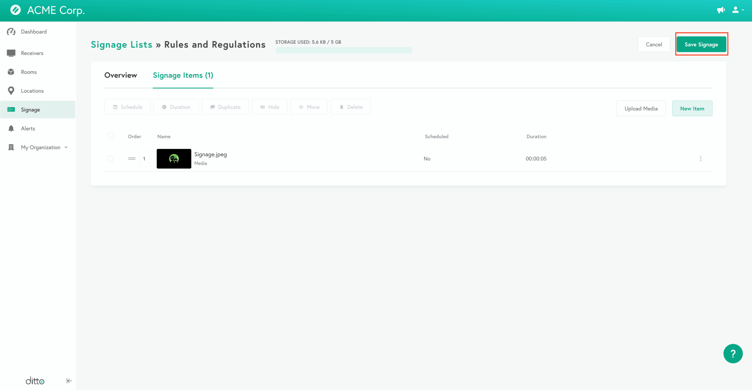 - If you want to add additional signage items to the list, click on the signage list, and click New Item.