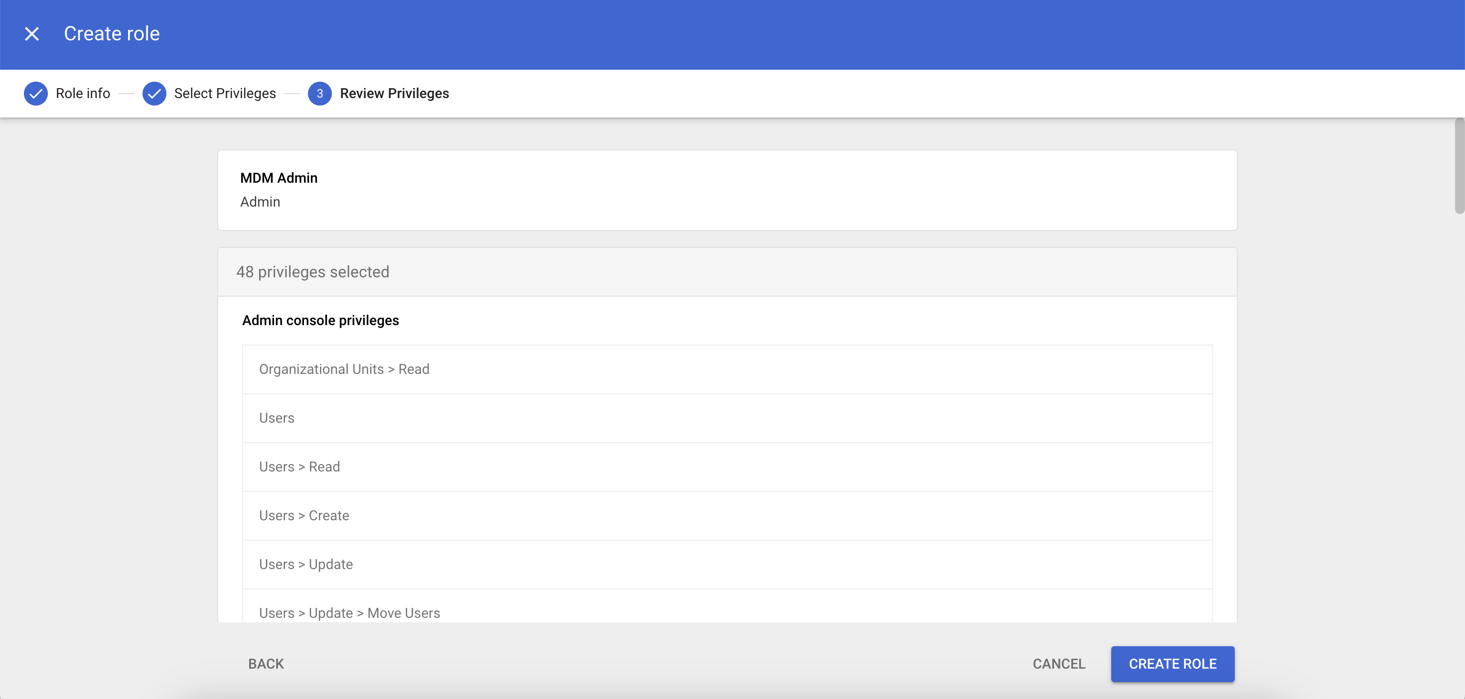 Google Workspace is a cloud-based platform that provides businesses and organizations with a suite of collaboration tools. Integrating Google Workspace with Hexnode streamlines device enrollment and enhances user management within the UEM. To effectively manage Google Workspace integration, specific administrative roles and privileges are required, which define the level of access within the Google Admin Console and API. This document will guide you with the necessary roles and privileges necessary for Google Workspace integration with Hexnode.