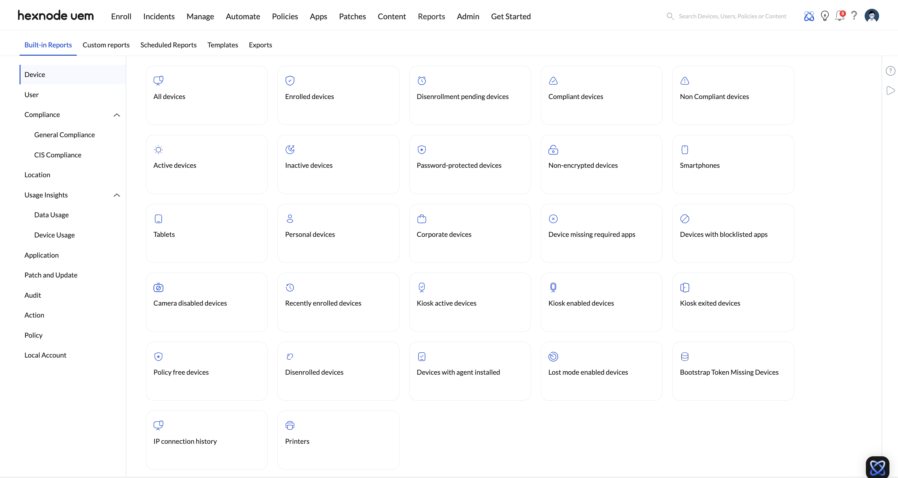 Hexnode UEM Built-in Reports: Centralized Auditing and Automation Guide