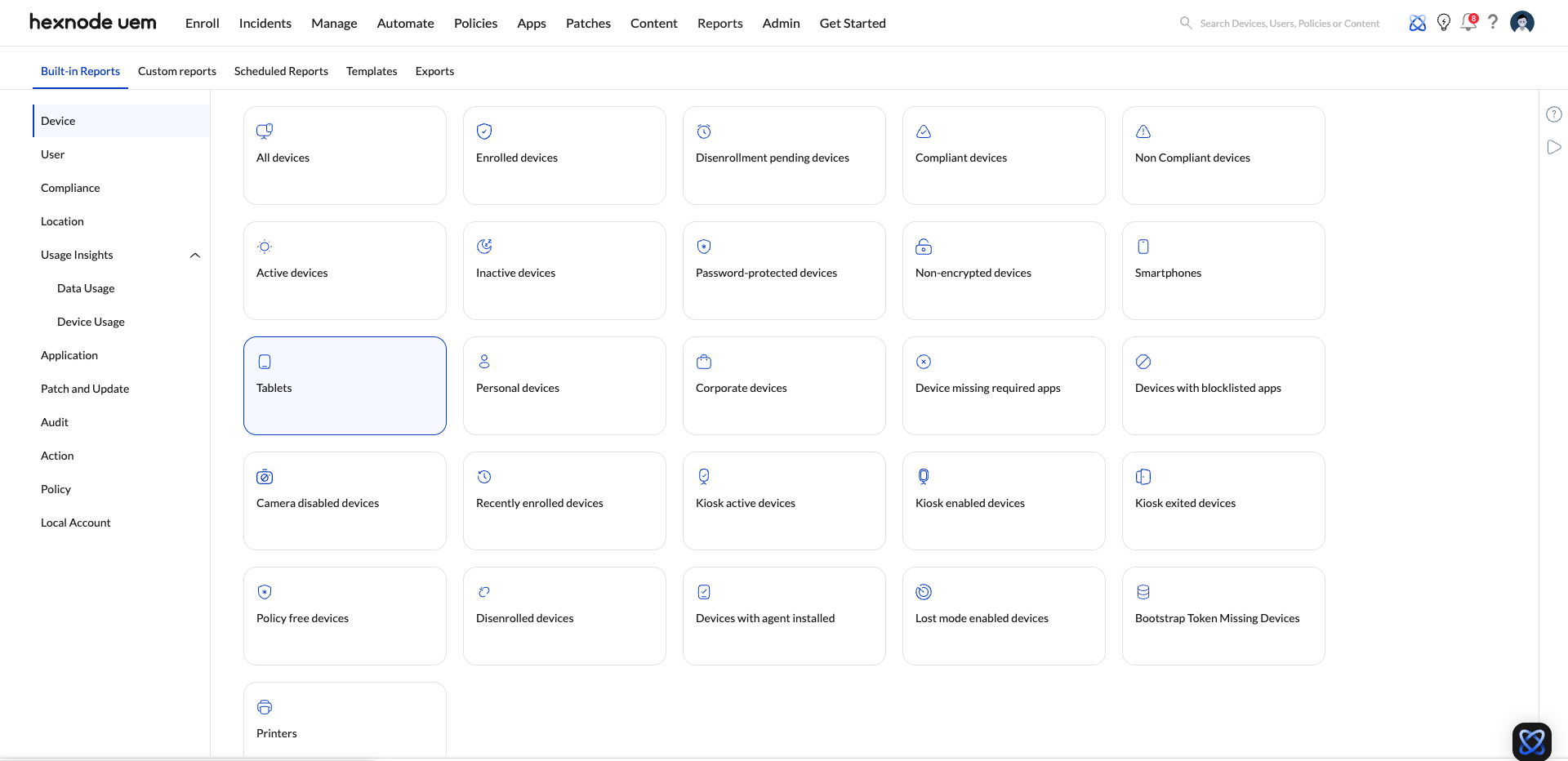 | Device Reports | A primary category within Hexnode’s Built-in Reports that provides a comprehensive, granular record of all managed hardware endpoints. | Inventory Audit and Fleet Monitoring. |