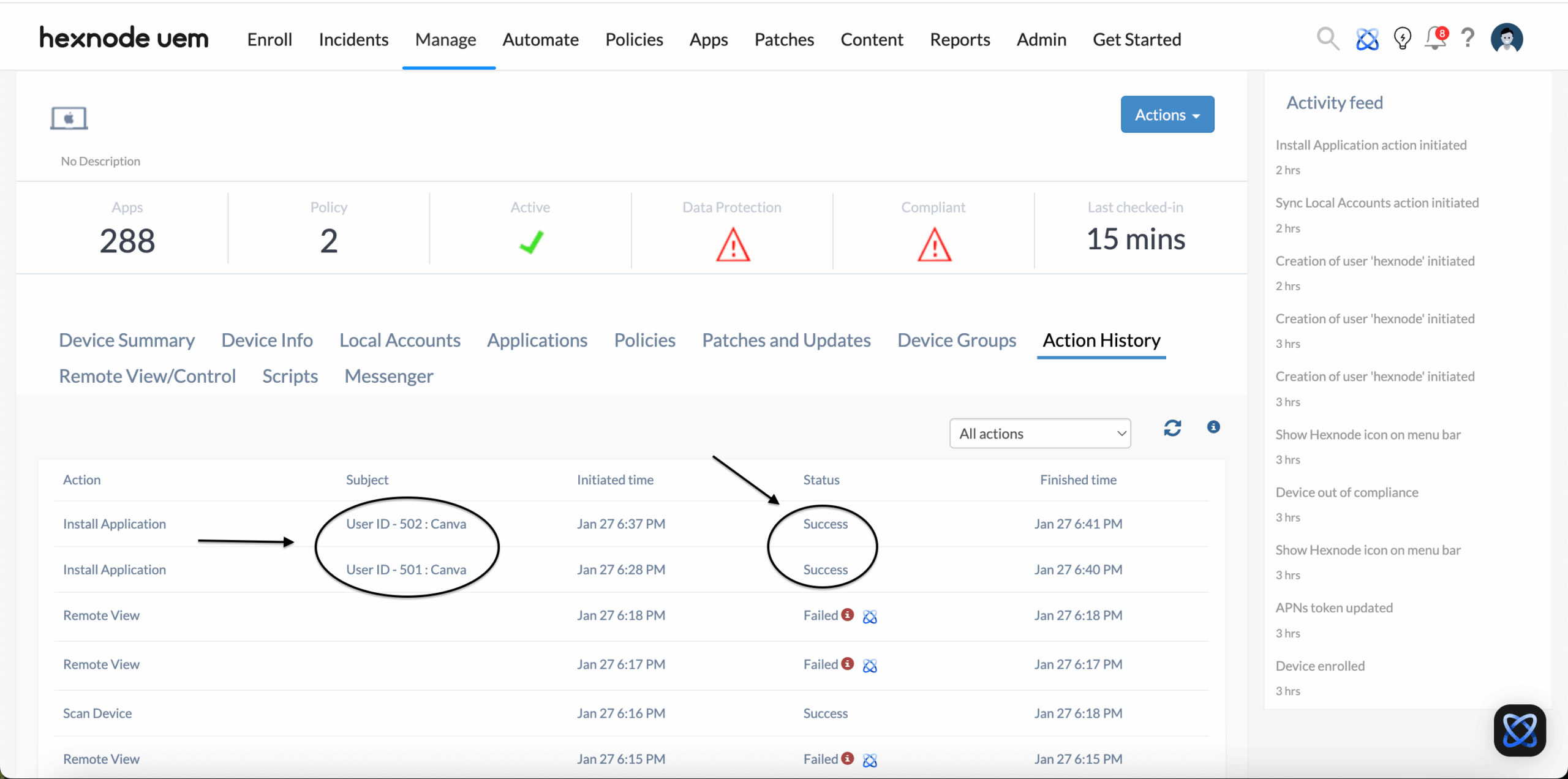 This action helps you to sync all the user accounts on your Mac into Hexnode UEM.