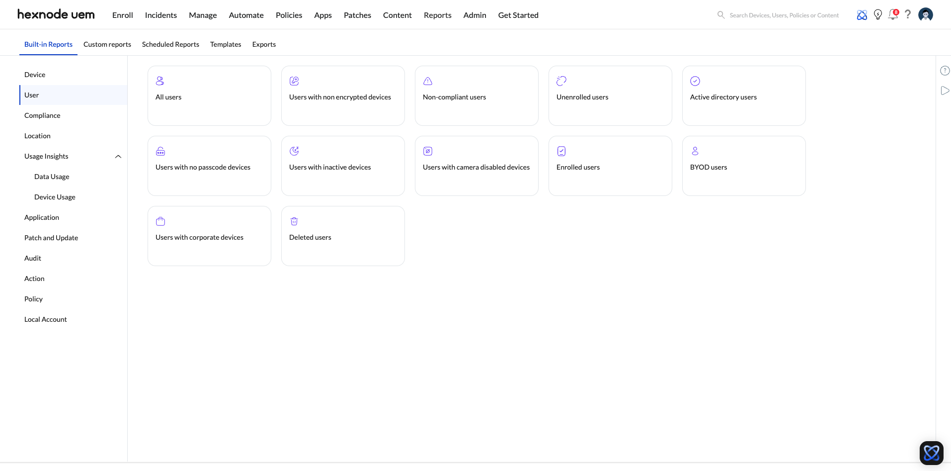 Hexnode UEM provides numerous reports categorized by the specific criterion used to segment the users: