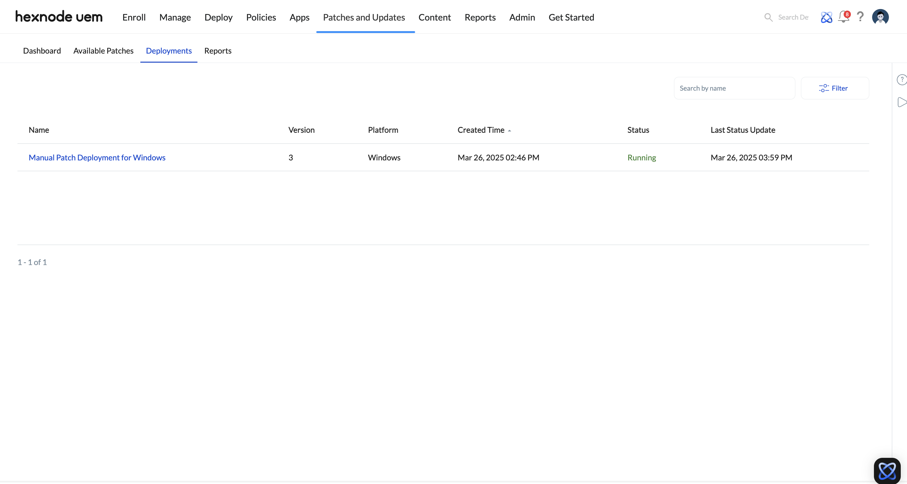 Once the Manual patching is deployed, you can track its status and make modifications if needed from the Automations subtab under the Patches and Updates tab.