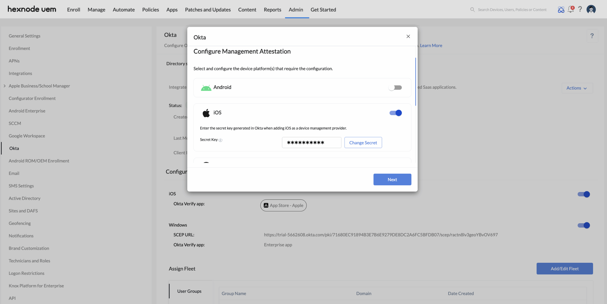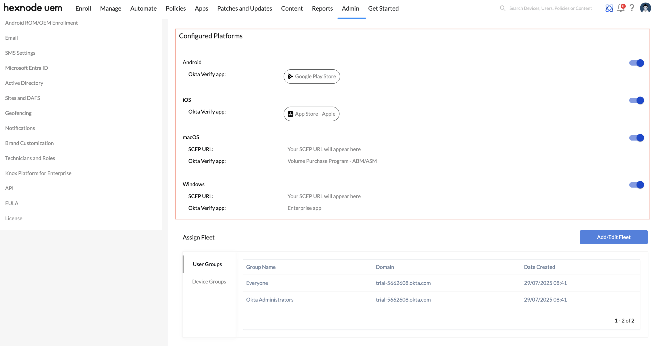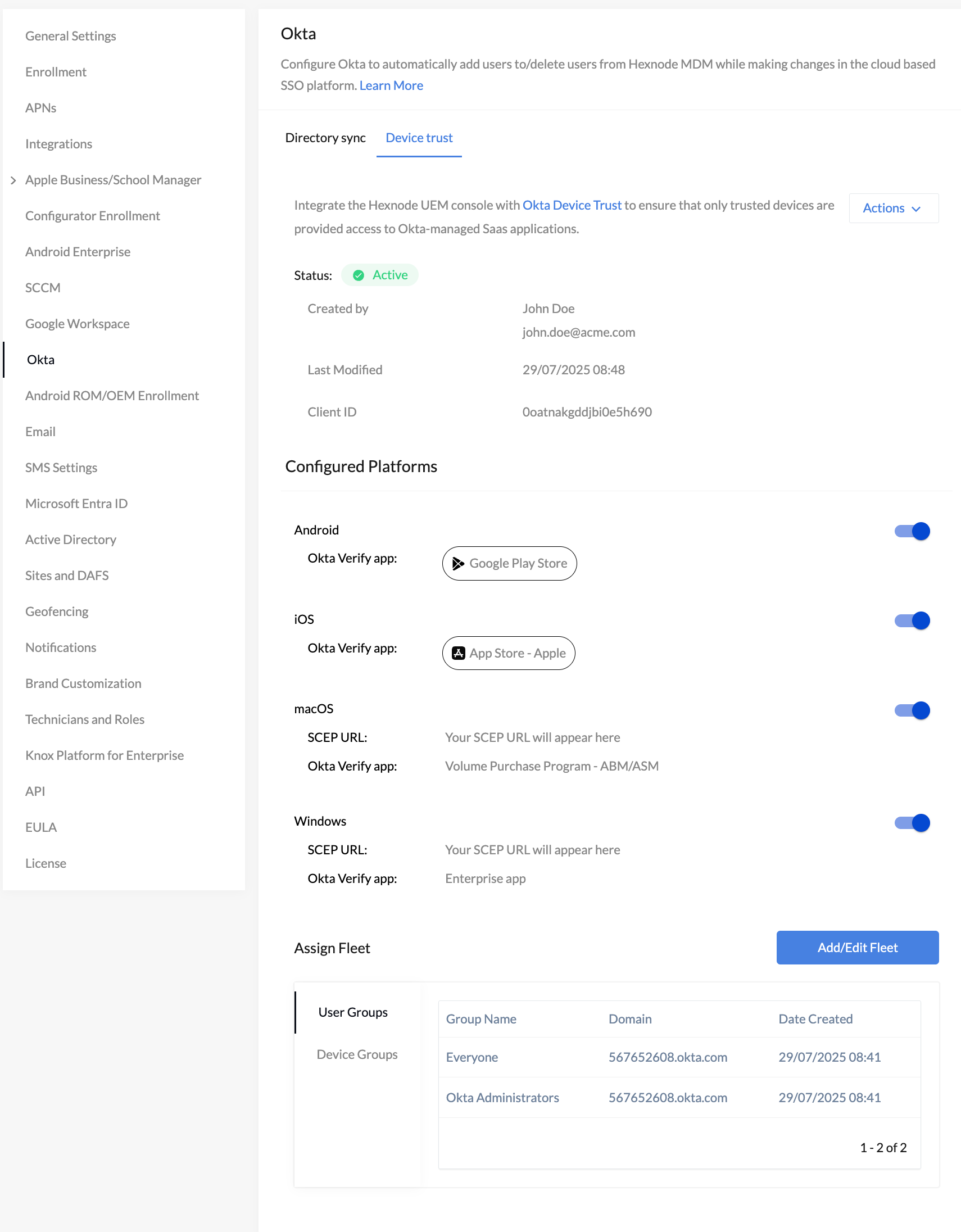You can review and manage your Okta Device Trust settings anytime in Hexnode UEM console.