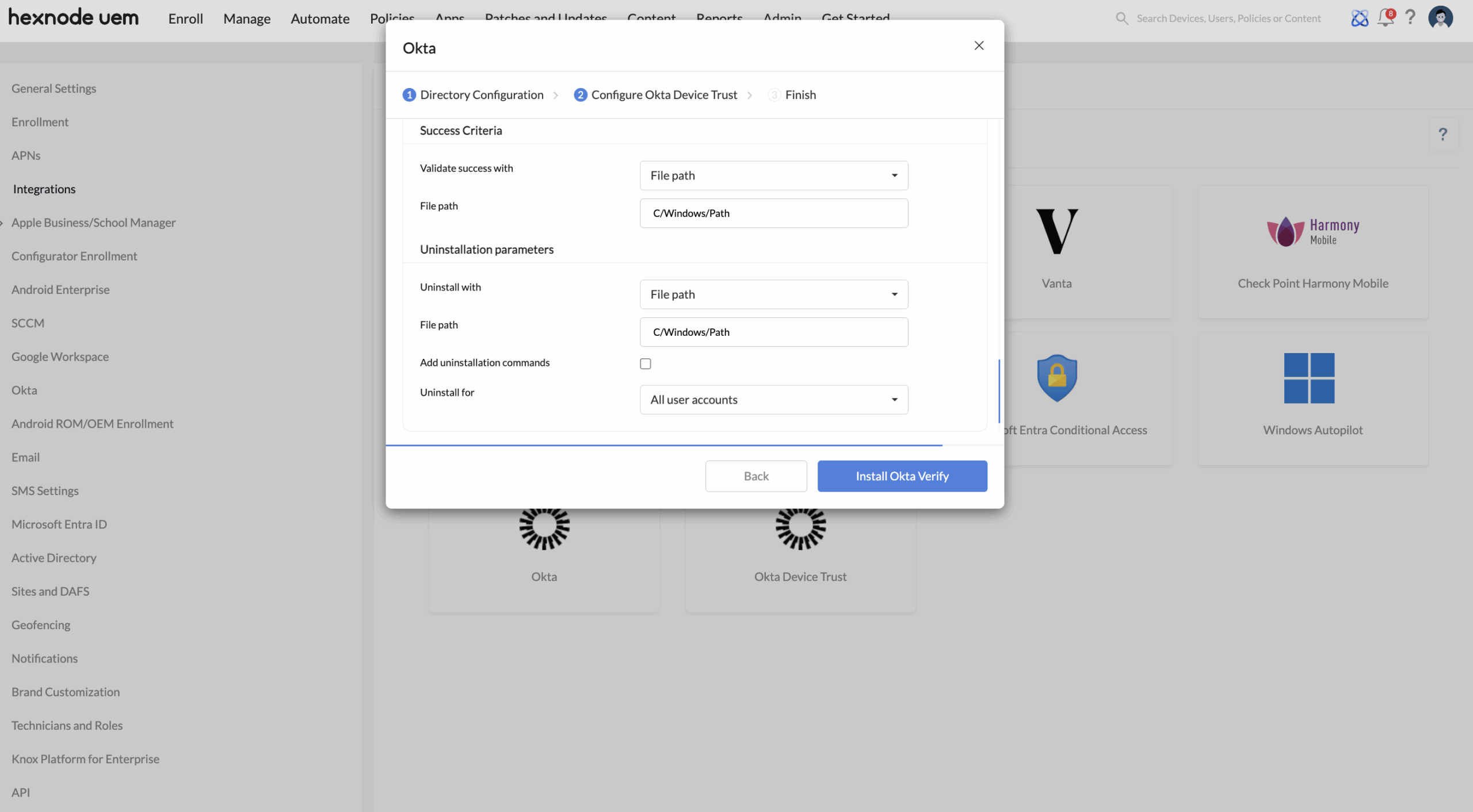 The following steps guide you through configuring Okta Device Trust (ODT) within Hexnode UEM: