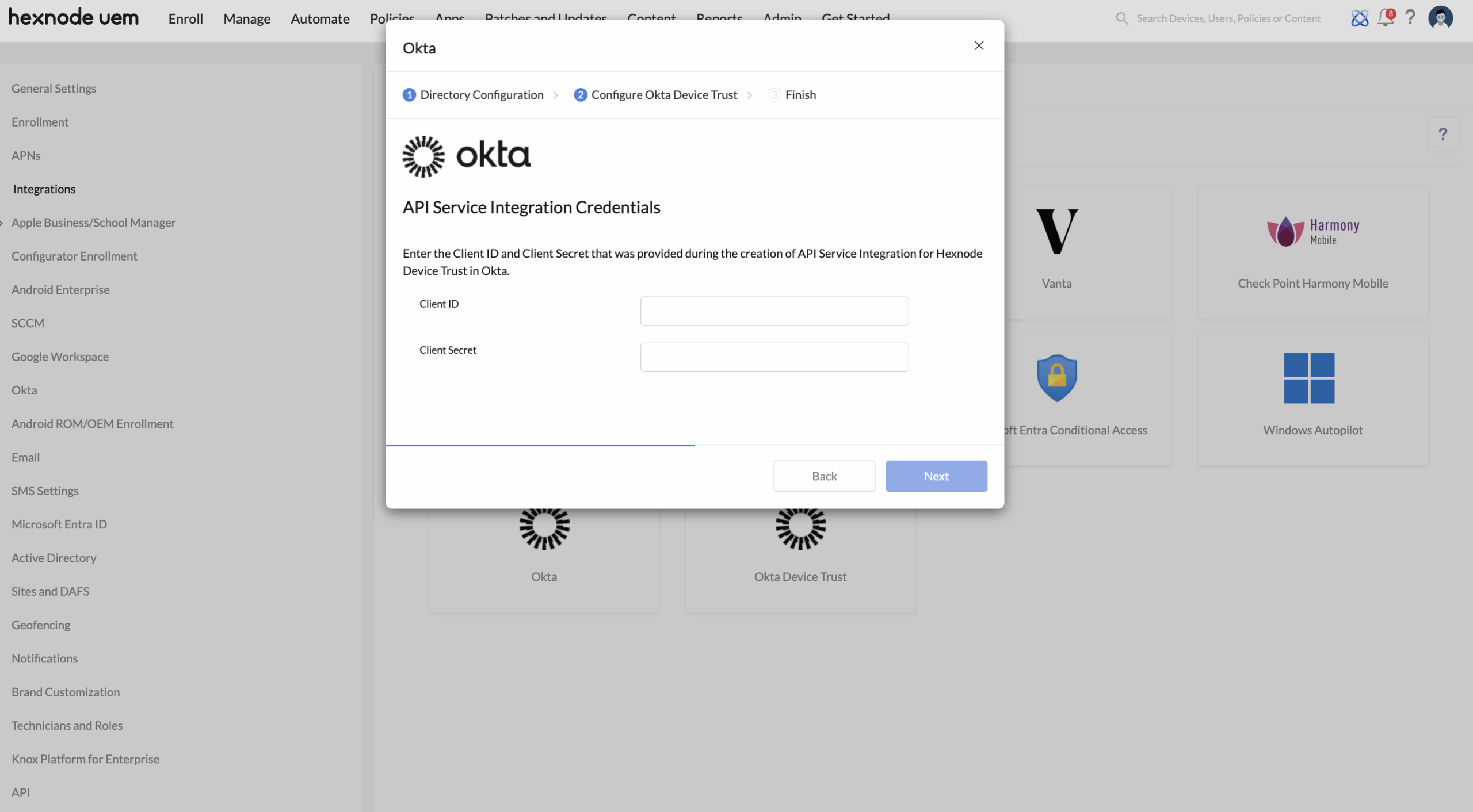 Step 2: Set up Okta Device Trust in the Hexnode UEM portal