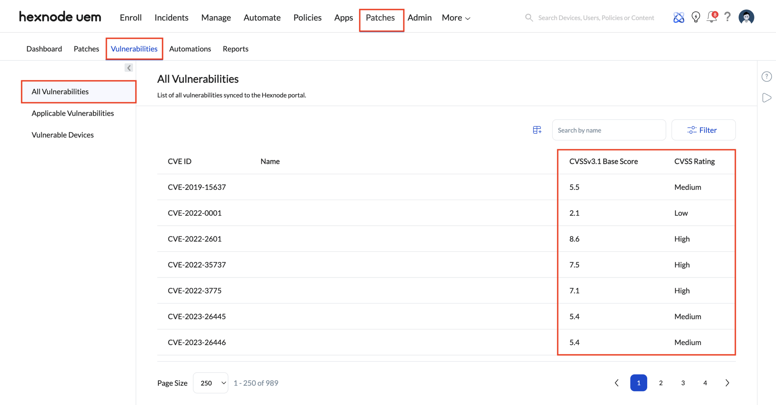 By utilizing a resident agent architecture, Hexnode correlates live device inventory—OS versions, installed binaries, and registry configurations—directly with the Global Common Vulnerabilities and Exposures (CVE) database. This empowers the 500-technician operational team to instantly identify risk and orchestrate remediation across 500,000 endpoints without WAN saturation.