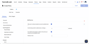 To address this challenge, Hexnode offers a Self Service feature that allows IT administrators to provide temporary administrator privileges for the standard users. This document helps you define self service policy for Windows devices from the Hexnode UEM console.