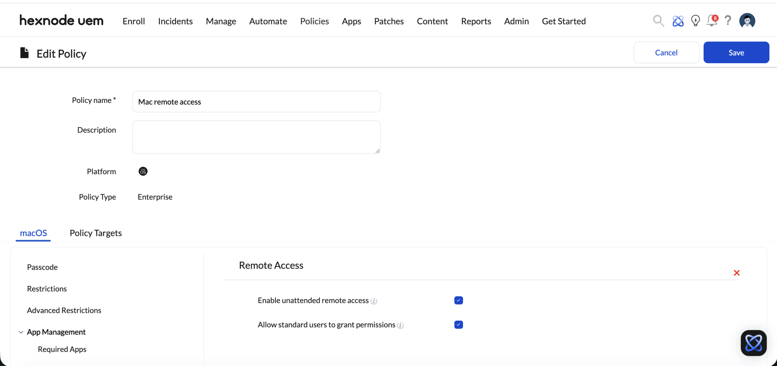 How to Configure Unattended Mac Remote Access via Hexnode?