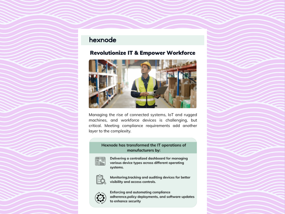 Hexnode provides enterprises with a comprehensive, secure, and scalable endpoint management solution. With advanced features for device security, application management, and compliance, Hexnode helps large organizations streamline operations, enhance productivity, and protect sensitive data across global networks.